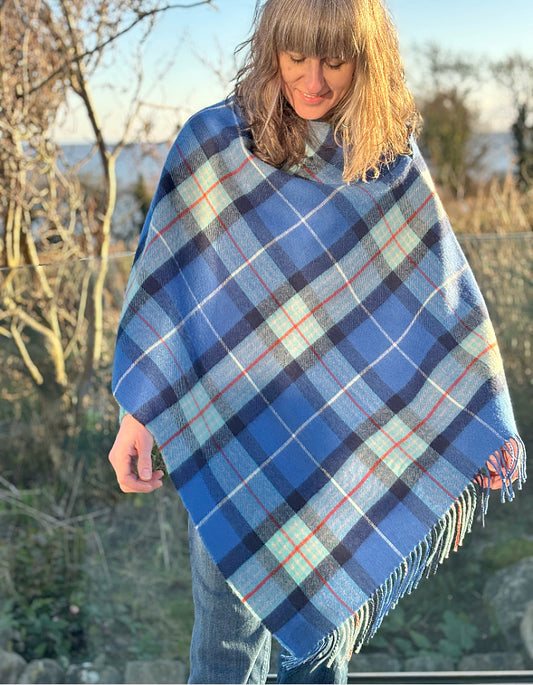 Lochcarron Lambswool Georgia Poncho in Steps to Hope Tartan
