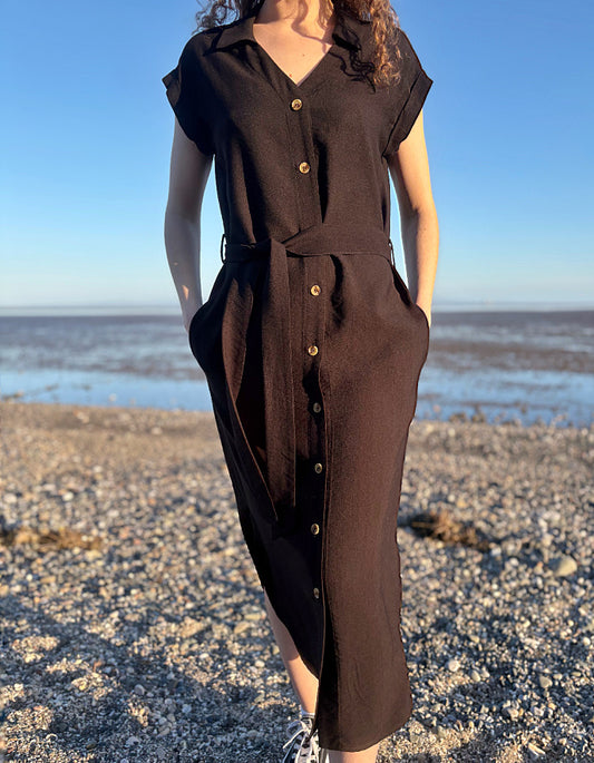 Pomodoro Shirt Midi Dress in Black