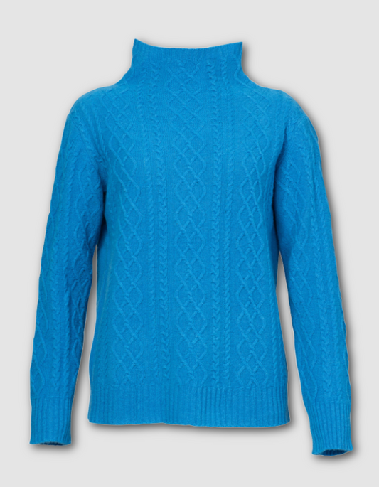 Heidekonigin Turtle Neck with Cables in Sky Blue