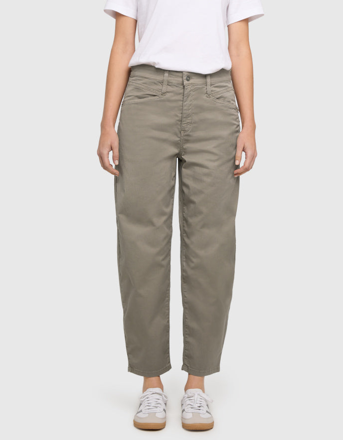High waist, curved leg with a tapered ankle, the barrel leg is having...