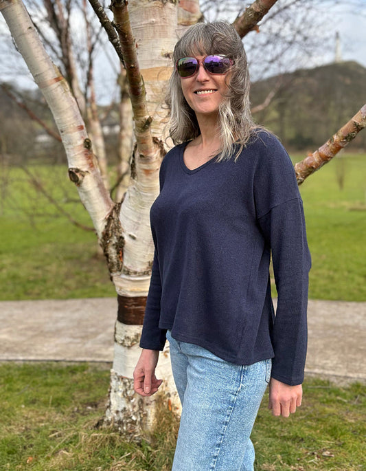 Neirami Boxy V-Neck Knit in Navy