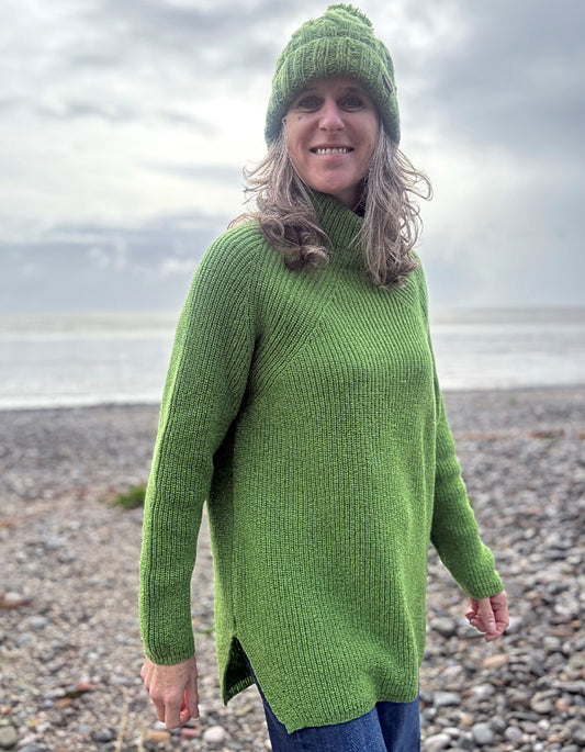 Dunque Ribbed Tunic Sweater in Avocado Melange