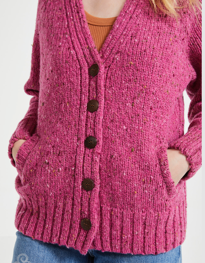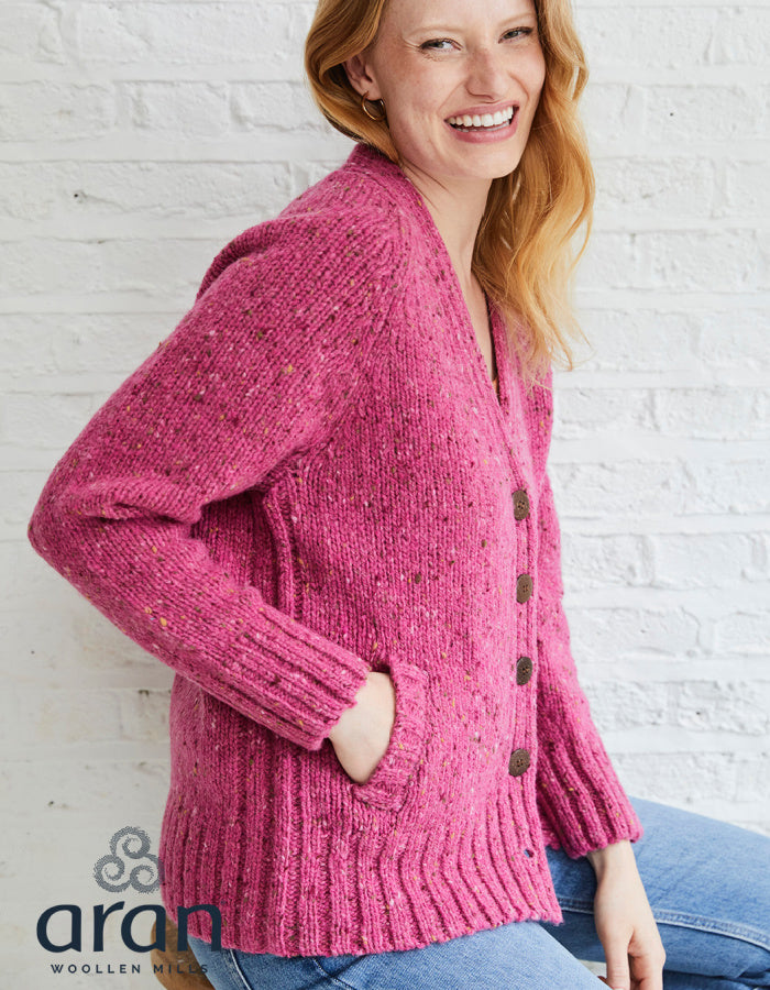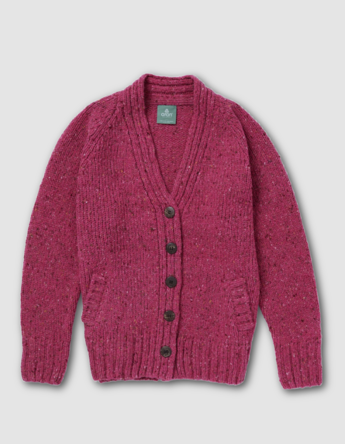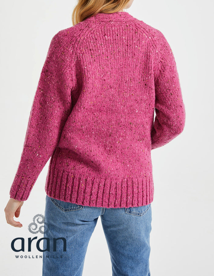 Aran Mills Donegal Cardigan with Side Pockets in Pink