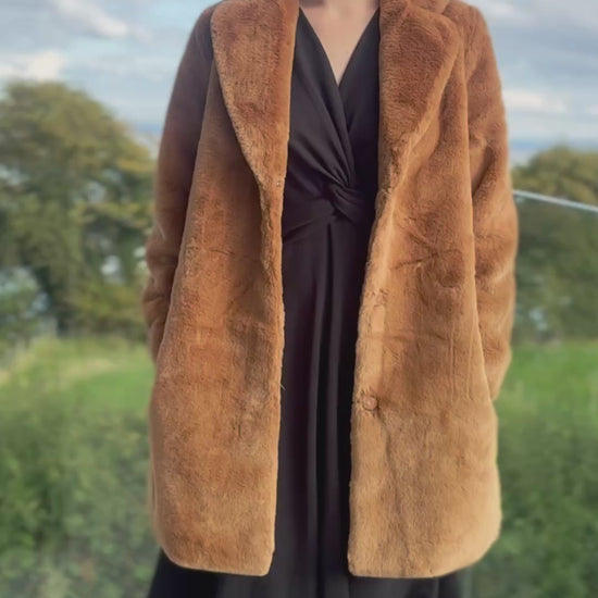 The Brave & True Jungle Coat in Nut is a cosy thing indeed. Made from ultra-soft faux fur in a rich brown shade, this mid-length coat is perfect for chilly days. Its plush texture not only feels luxurious against the skin but also provides reliable insulation, making it an ideal choice for staying stylish and snug throughout the colder seasons.