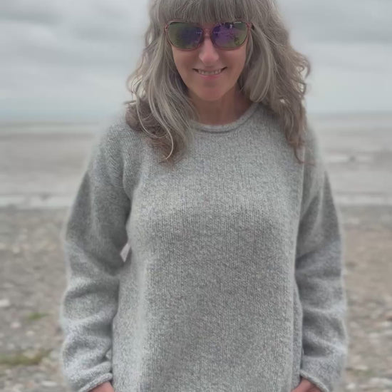 This wide-fit boxy jumper offers a relaxed silhouette with a stylish high-low hemline and a comfortable rolled neckline. Crafted from a Donegal tweed blend enriched with baby-soft alpaca, it provides a gentle, luxurious feel against the skin. The soft pink hue and textured fabric add subtle elegance, making it a versatile piece that supports both comfort and style in your everyday wardrobe